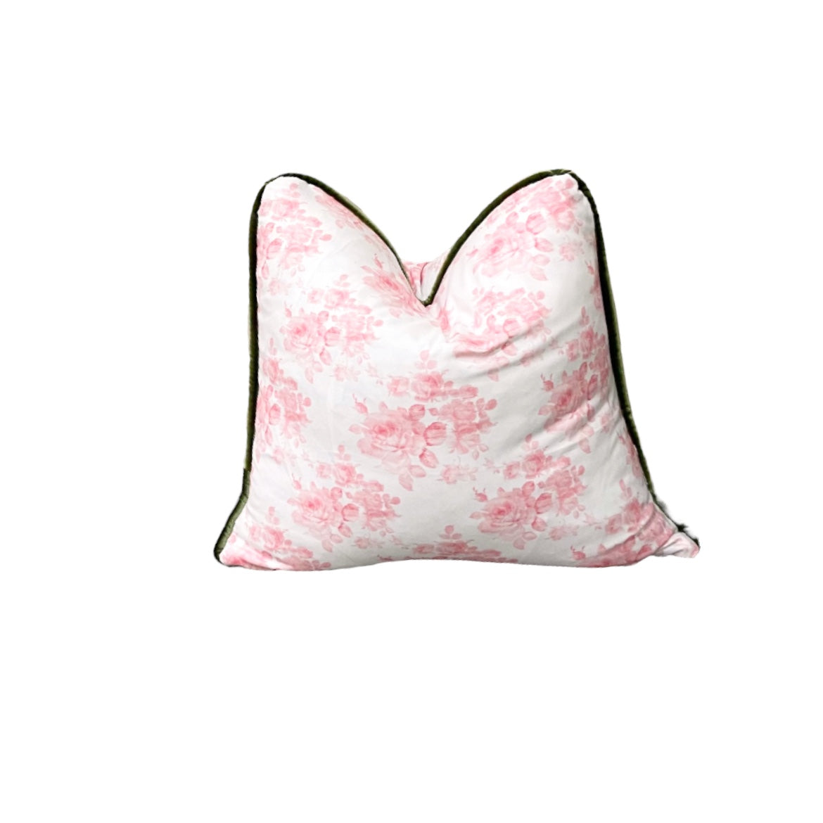 Pink Floral w Green Cording Throw Pillow